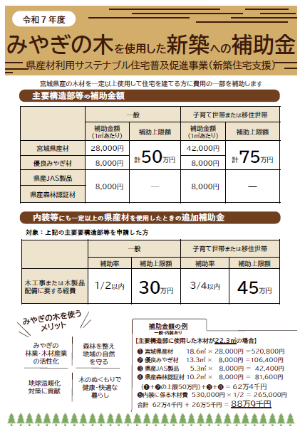 宮城の木を使用した新築住宅への補助金(県産材サステナブル住宅普及促進事業)