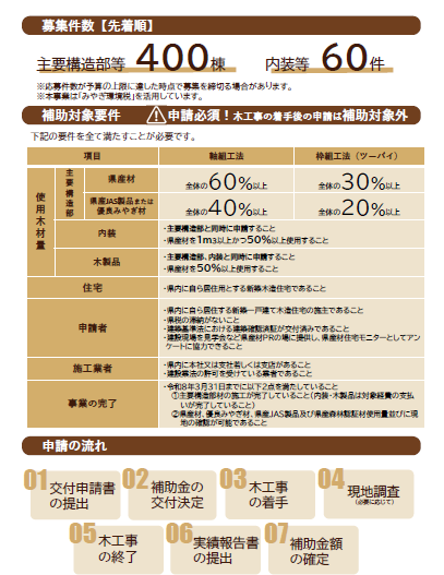 宮城県の県産材サステナブル住宅普及促進事業が実施されています